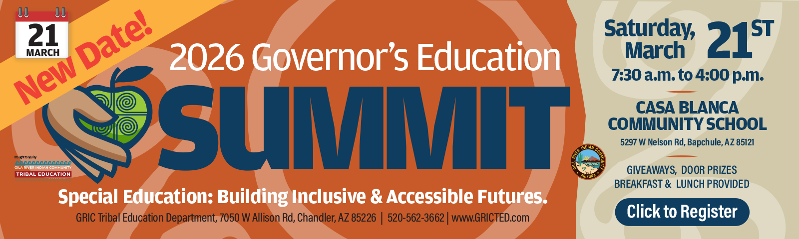 Welcome to the new Gila River Indian Community Tribal Education Department website. We are excited to be a resource, share upcoming news and announce TED events. Please let us know if there are areas where you would like more information or if you have feedback of any kind. We are here to serve you, the Community.